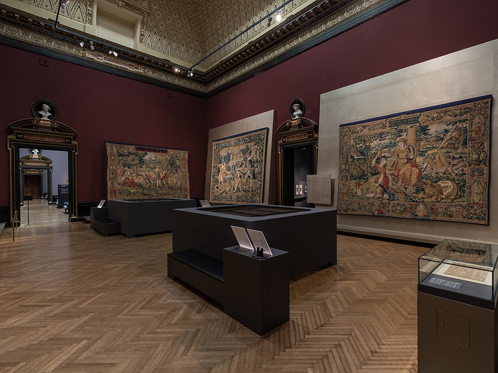 Winter Artservice fertigte die Unterkonstruktion für diese kostbaren Werke im Kunsthistorischen Museum Wien. Die schlichten Holzunterkonstruktionen lassen die luxuriösen Textilien in den Räumlichkeiten ideal wirken. Beleuchtete Präsentationstafeln und Vitrinen geben Auskunft zu den „Fäden der Macht“.